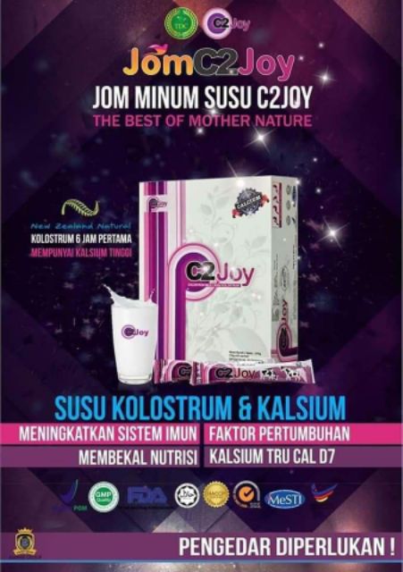Oct 22 2020 - Susu C2 Joy adalah campuran skim susu dan dua bahan terbaik iaitu kolostrum lembu dan TruCal yang amat penting untuk tubuh kita. Kekuatan dan keberkesanan produk ini telah terbukti apa bila kilang C2Joy mendapat pensijilan dan pengiktirafan oleh Kementerian Kesihatan Malaysia KKM untuk Skim Pensijilan Makanan Selamat Tanggungjawab Industri MeSTI Good Manufacturing Practice GMP Hazard. Kolostrum adalah susu yang dihasilkan oleh lembu betina dalam tempoh 48 jam pertama selepas melahirkan.